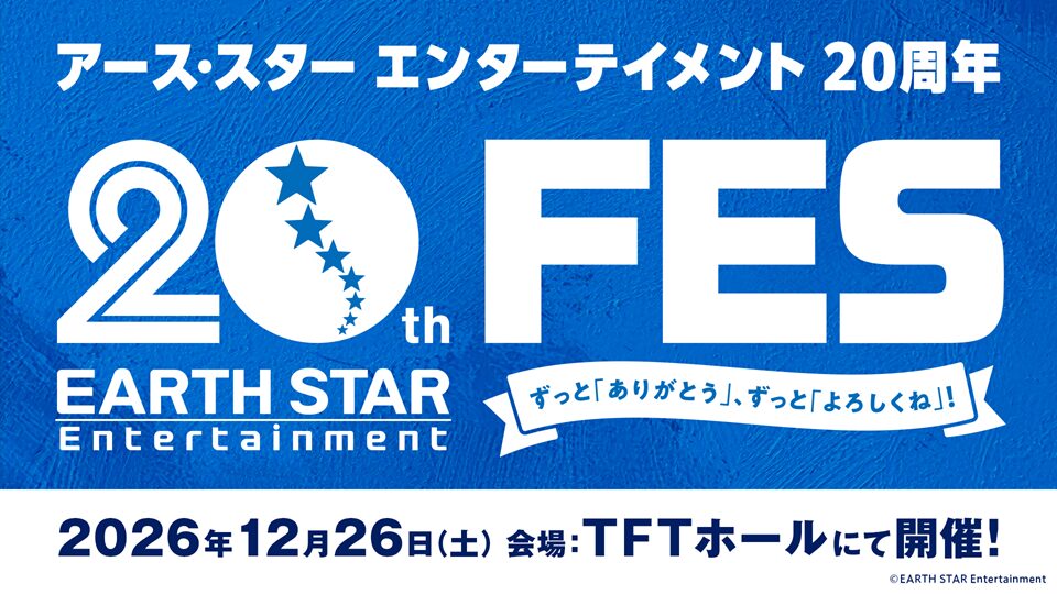 アース・スター エンターテイメントは、2026年に創立20周年を迎えました。皆様への長いご愛顧への感謝と周年を記念し、12月26日(土)にTFTホールにてフェスを開催いたします。